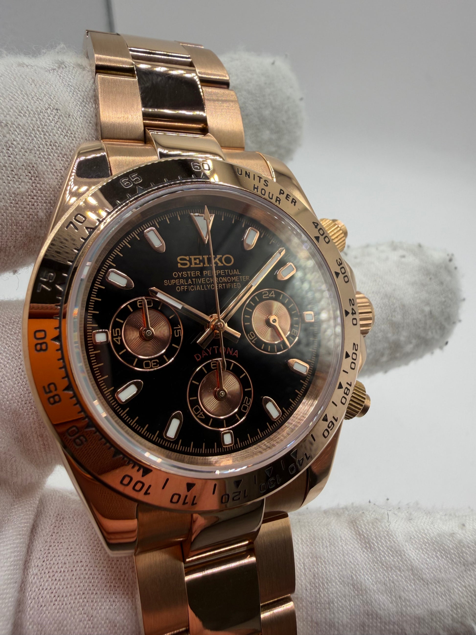 Inspirée du design iconique de la Rolex Daytona, nous avons l'honneur de vous présentez la Seiko MOD Daytona dotée du prestigieux mouvement Hybride Seiko VK63A. Une montre de 40 mm de haute qualité, alliant parfaitement excellence et accessibilité pour ne plus passer inaperçue lors de vos meilleurs évènements offrant un style unique Sport/Chic. Cette montre a été assemblée avec soin par nos experts artisans.