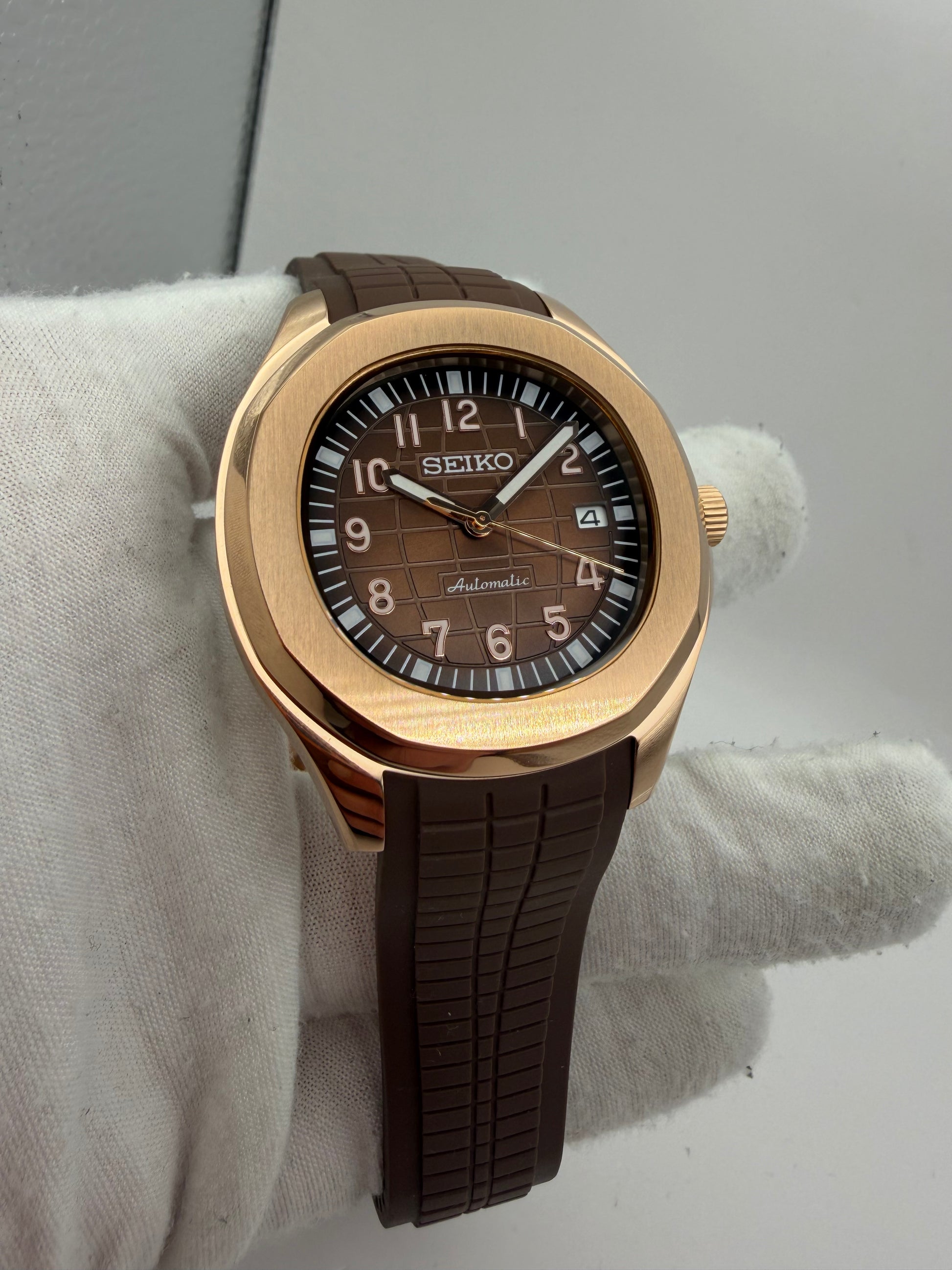 Inspirée du design iconique de la Patek Philippe Aquanaut, nous avons l'honneur de vous présentez la Seiko MOD Aquanaut Chocolate dotée du prestigieux mouvement automatique Seiko NH35. Une montre de 42 mm de haute qualité, alliant parfaitement excellence et accessibilité pour ne plus passer inaperçue lors de vos meilleurs évènements avec ce style Sport/Chic. Cette montre a été assemblée avec soin par nos experts artisans.