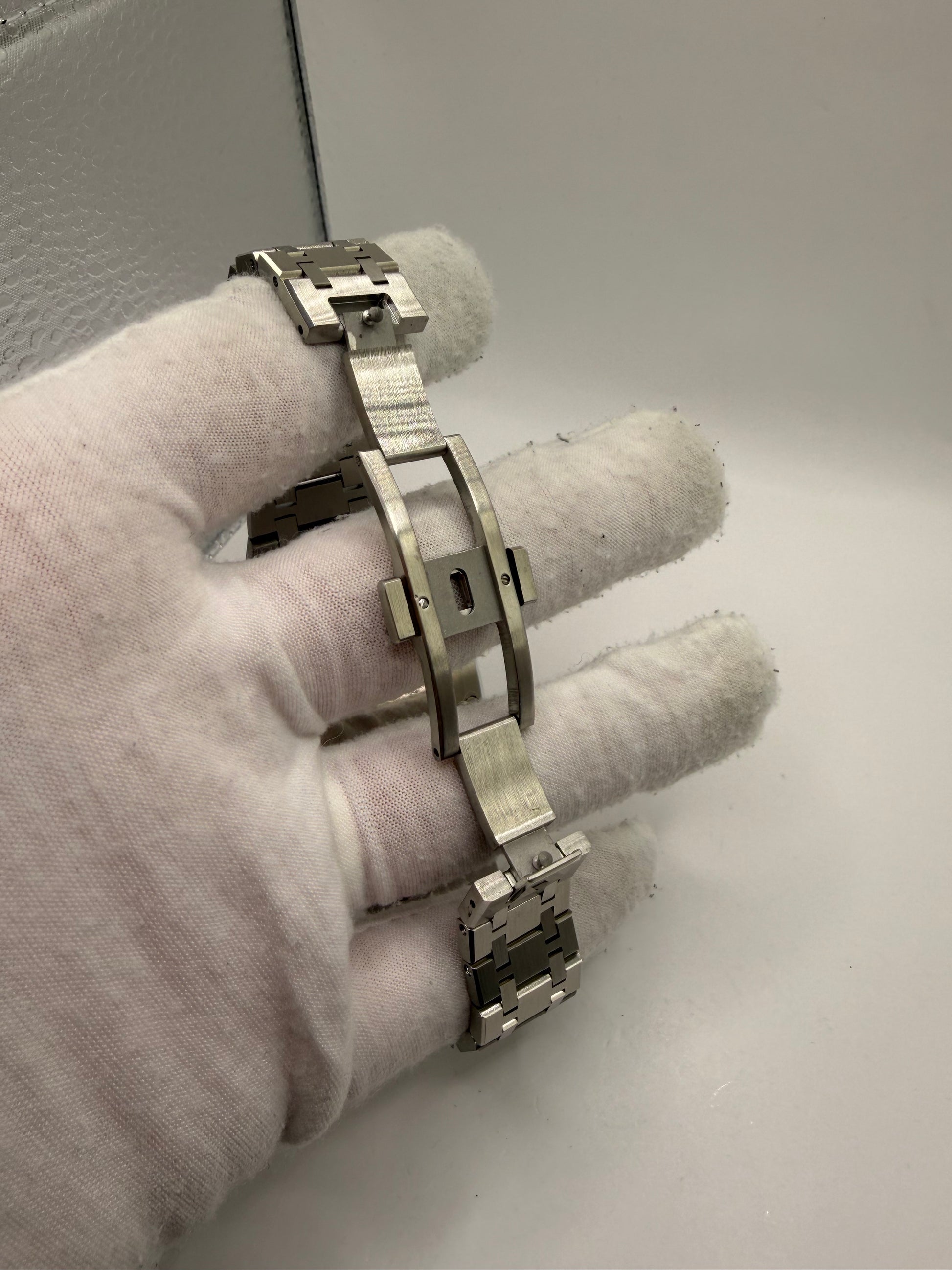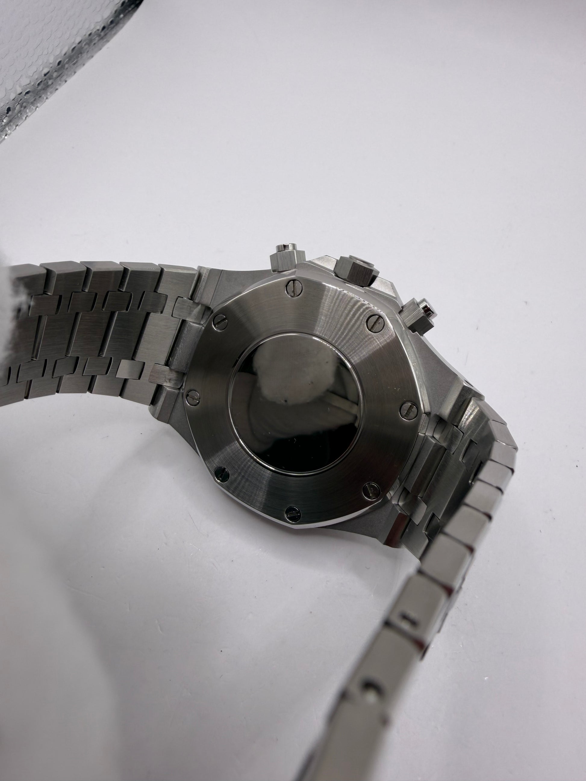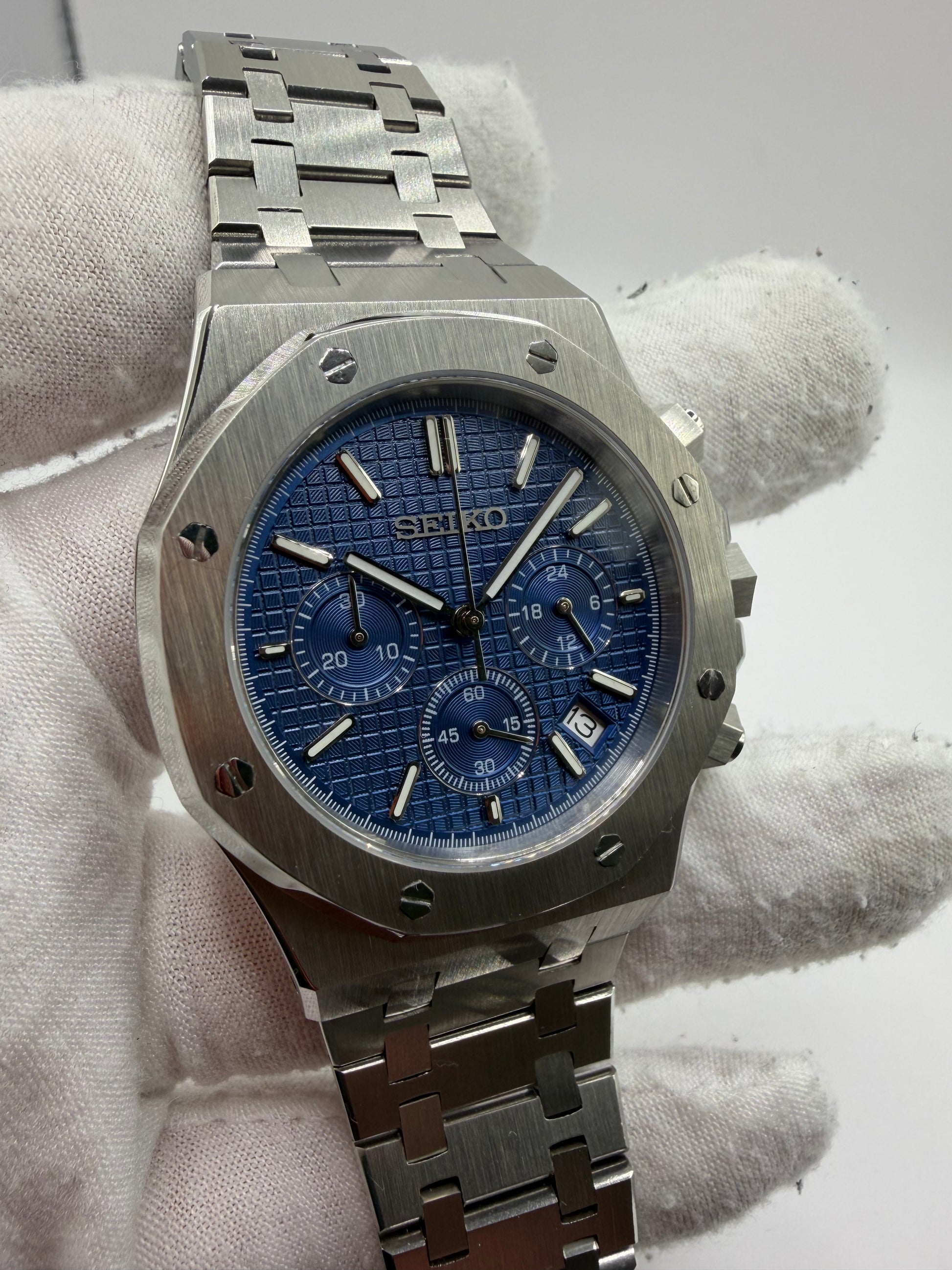 Inspirée du design iconique de la Audemars Piguet Royal oak, nous avons l'honneur de vous présentez la Seiko MOD Royal Oak Chrono dotée du prestigieux mouvement Hybride Seiko VK63A. Une montre de 42 mm de haute qualité, alliant parfaitement excellence et accessibilité pour ne plus passer inaperçue lors de vos meilleurs évènements offrant un style unique Sport/Chic. Cette montre a été assemblée avec soin par nos experts artisans.