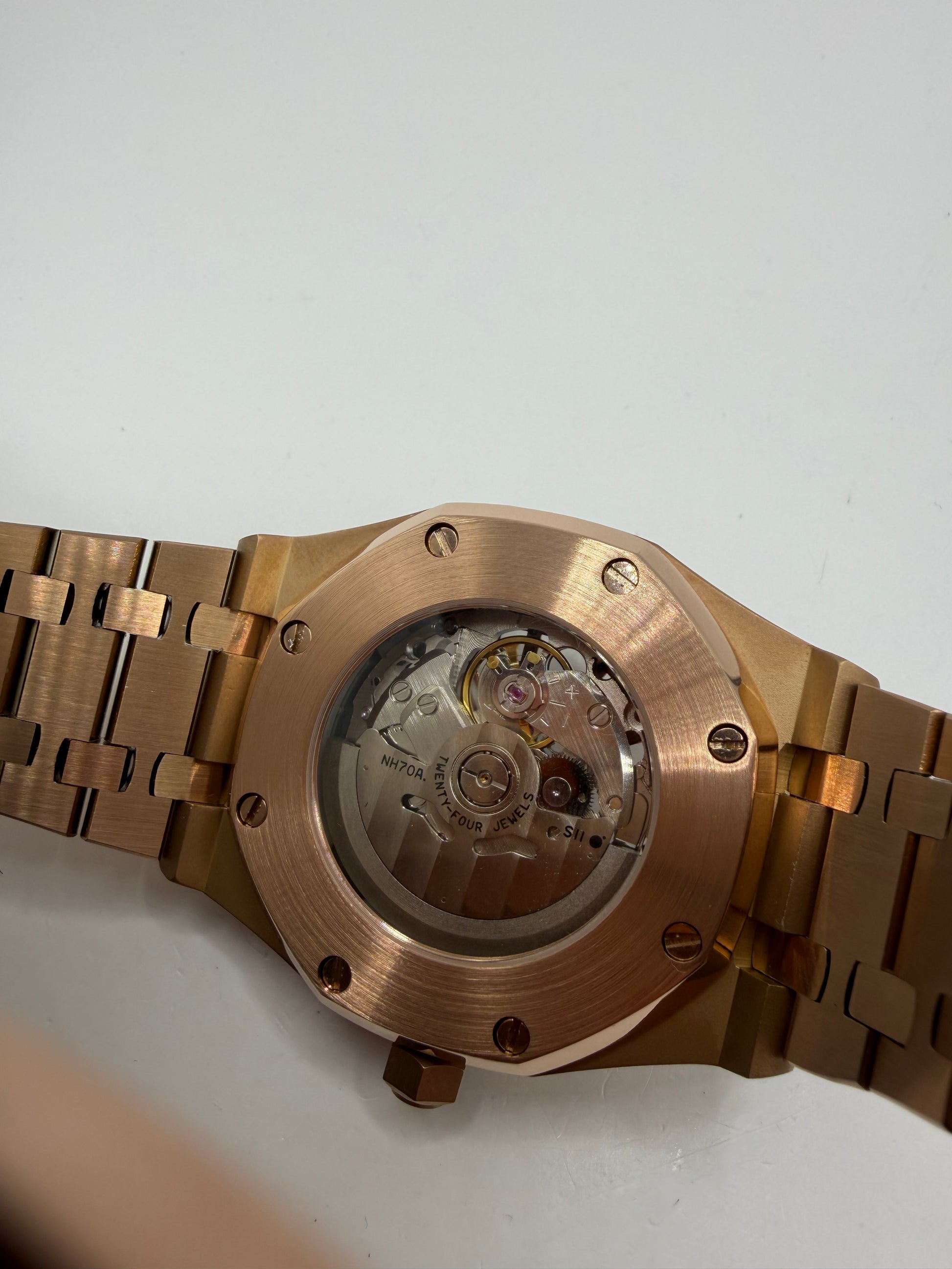 Inspirée du design iconique de la Audemars Piguet Royal Oak, nous avons l'honneur de vous présentez la Seiko MOD Royal Oak dotée du prestigieux mouvement automatique Seiko NH70. Une montre de 42 mm de haute qualité, alliant parfaitement excellence et accessibilité pour ne plus passer inaperçue lors de vos meilleurs évènements. cette montre a été assemblée avec soin par nos experts artisans